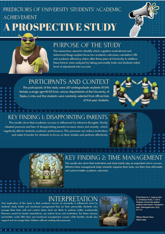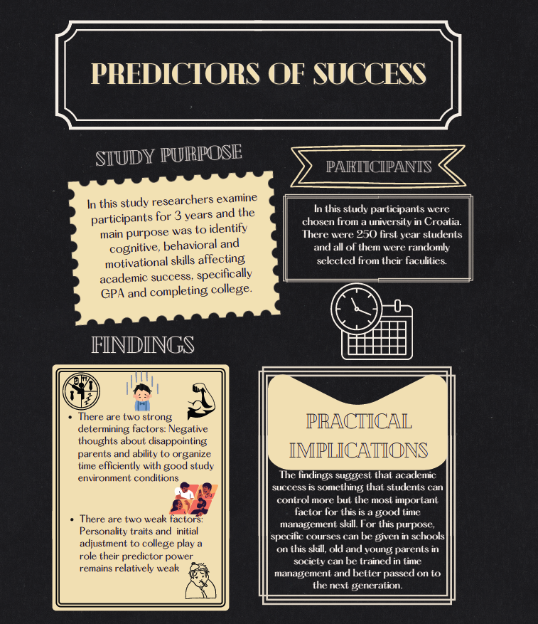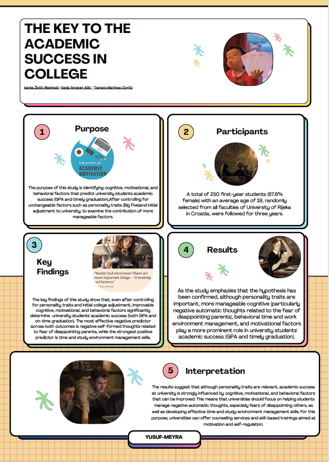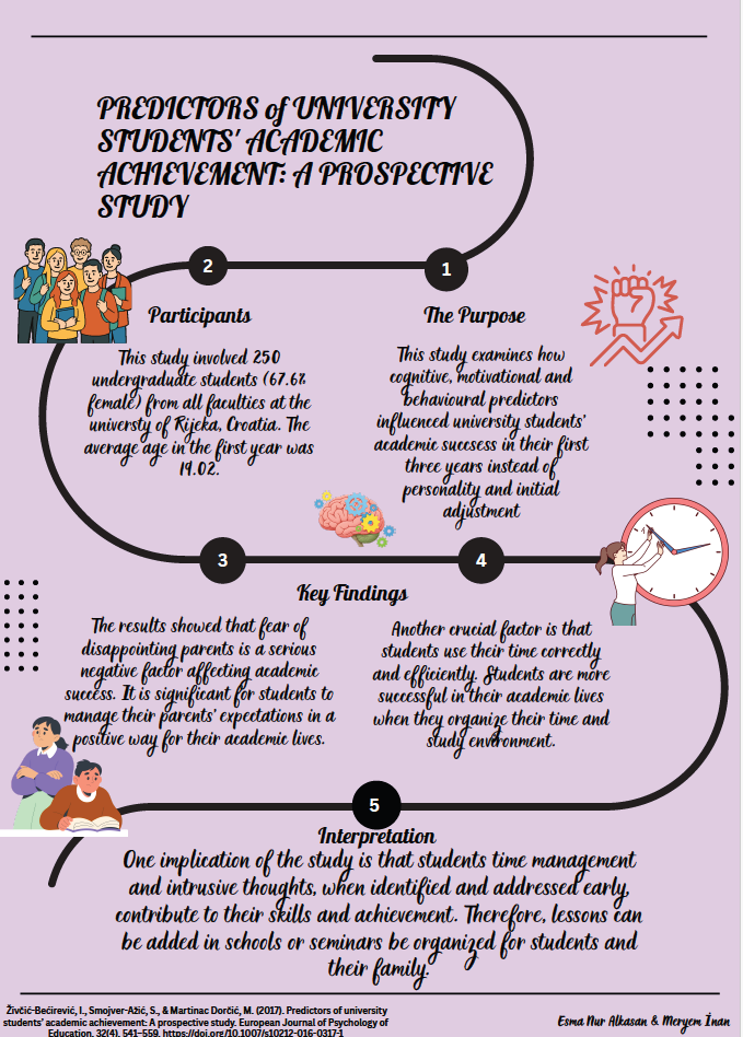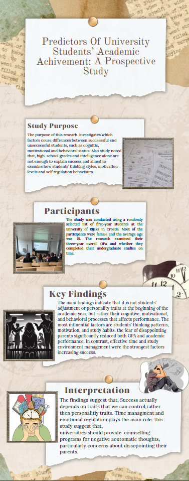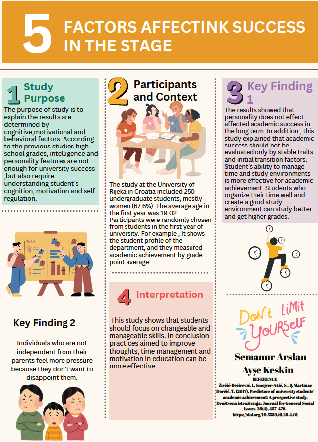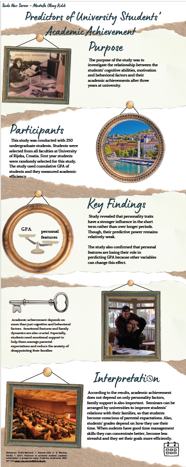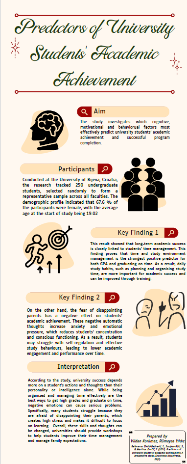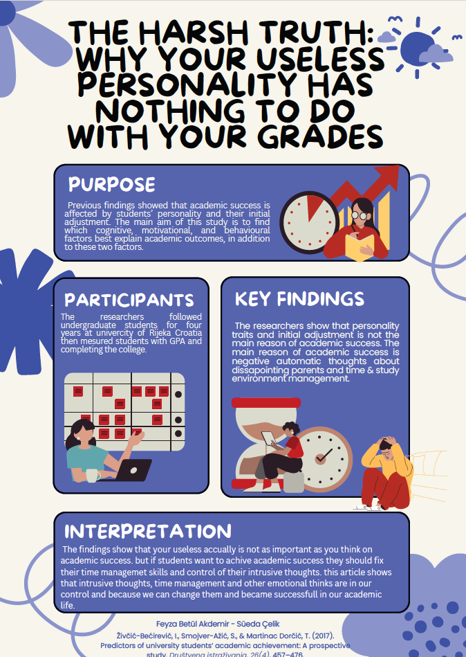 If you are curious about the factors affecting academic success, these infographics prepared by first-year students from the Psychology Department can give you some ideas.